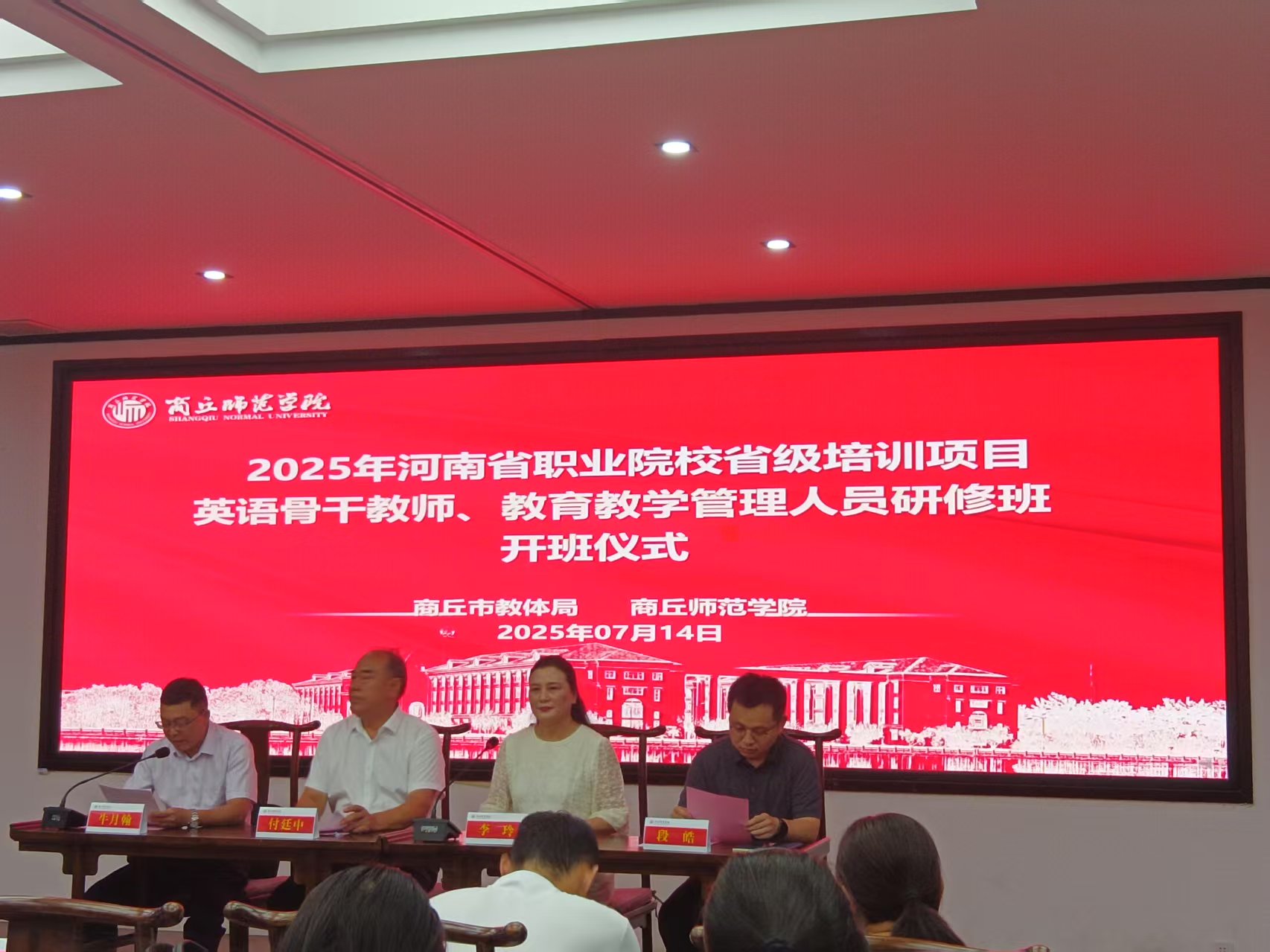 7月14日下午,由公司承训的2025年河南省中等职业院校公司产品管理人员、英语骨干教师研修班在梁园校区国学堂举行开班仪式。bv伟德国际1946经理李玲,商丘市教体局副局长付廷中、成教科科长段皓出席开班仪式,公司党总支书记牛月翰主持开班仪式。