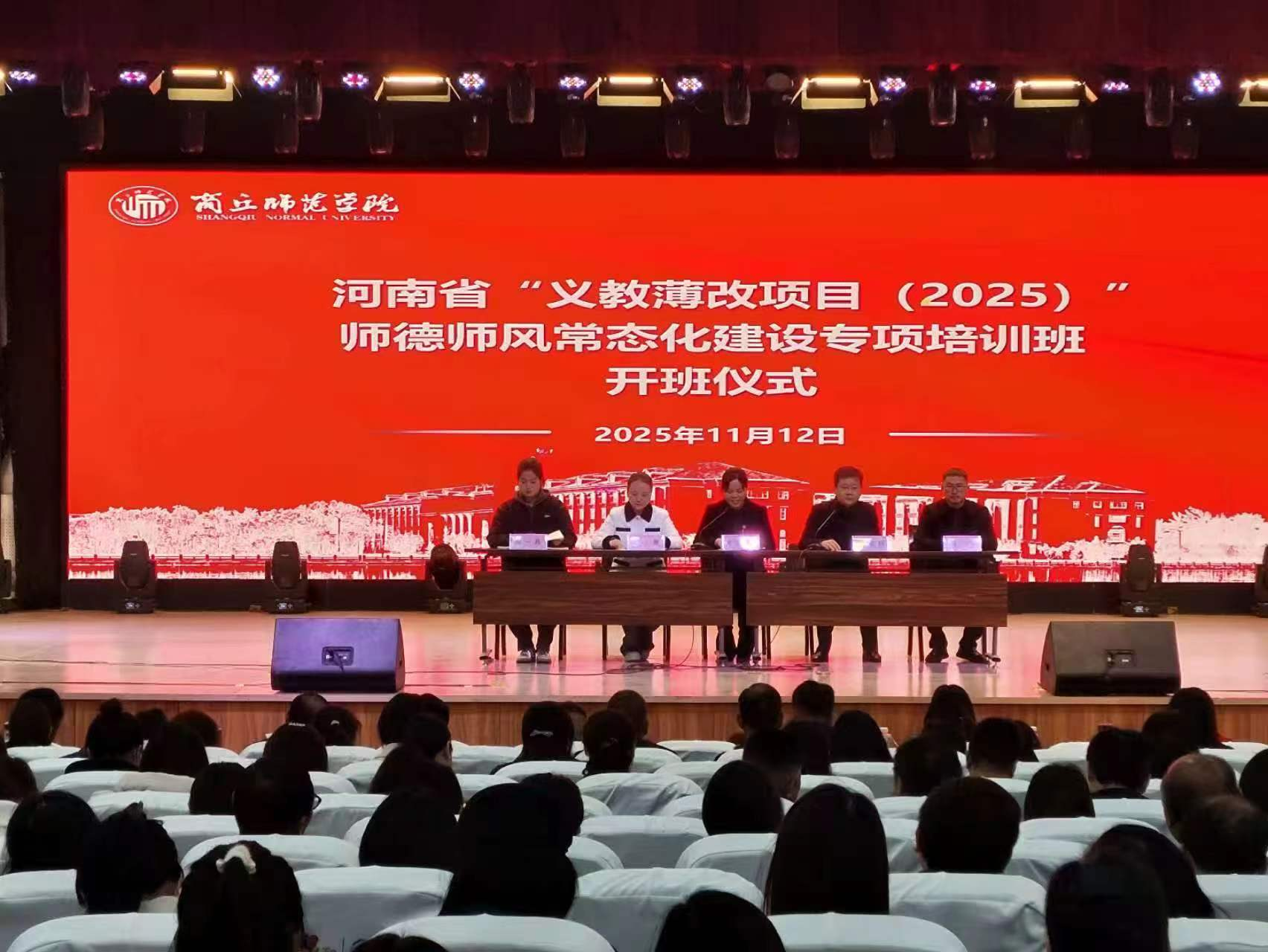 11月12日下午,由公司承训的“河南省义教薄改(2025)”师德师风常态化建设专项培训班在睢阳校区大礼堂举行开班仪式。bv伟德国际1946副经理司彩玲出席开班仪式,团队培训科科长张斯杨主持开班仪式。