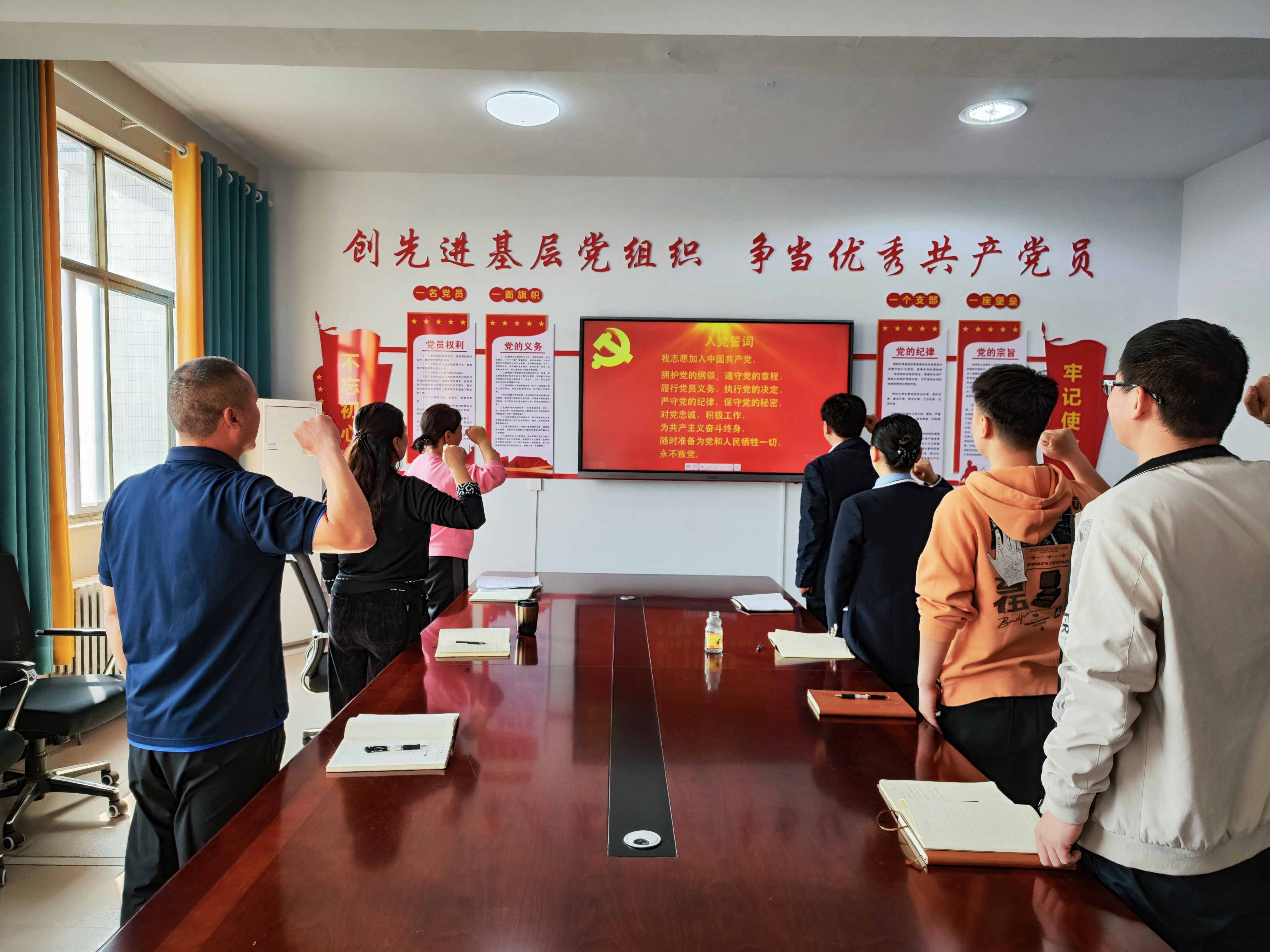 活动中,党员干部重温了入党誓词,从入党誓词中大家倍受鼓舞,激发了自豪感、使命感和责任感。结合我党从成立到改革开放,到中国特色社会主义新时代取得的伟大成就,回顾我党的百年光辉历史,让全体党员再次对党史有了一个更为全面深刻的认识。