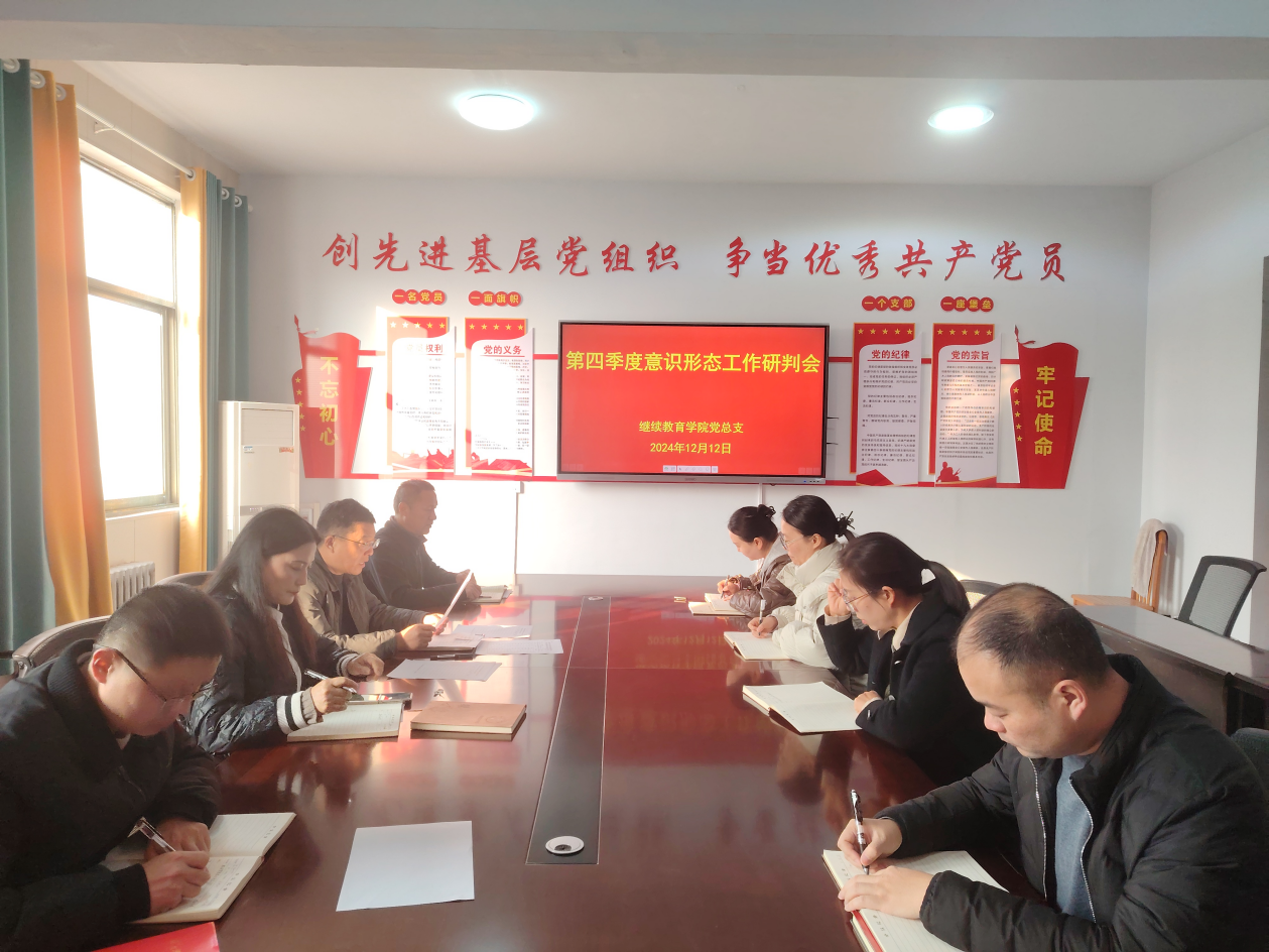 12月12日上午,公司党总支召开第四季度意识形态工作分析研判会,学院科级以上人员参加会议,党总支书记牛月翰主持会议。
