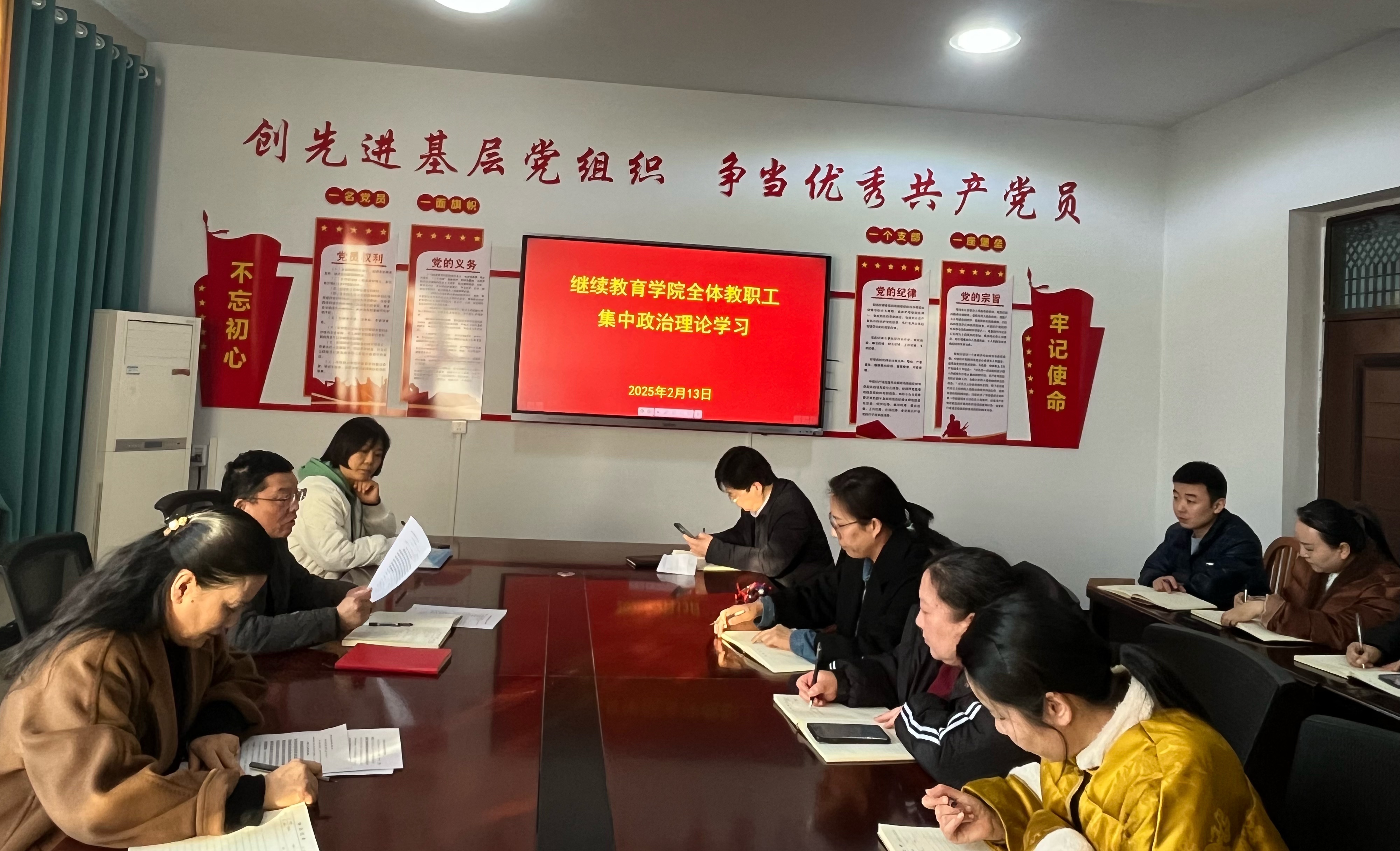 2月13日下午,bv伟德国际1946组织全体教职工集中开展政治理论学习,集中学习《教育强国建设规划纲要(2024—2035年)》(以下简称《纲要》)。全体教职工参加会议,党总支书记牛月翰主持会议。