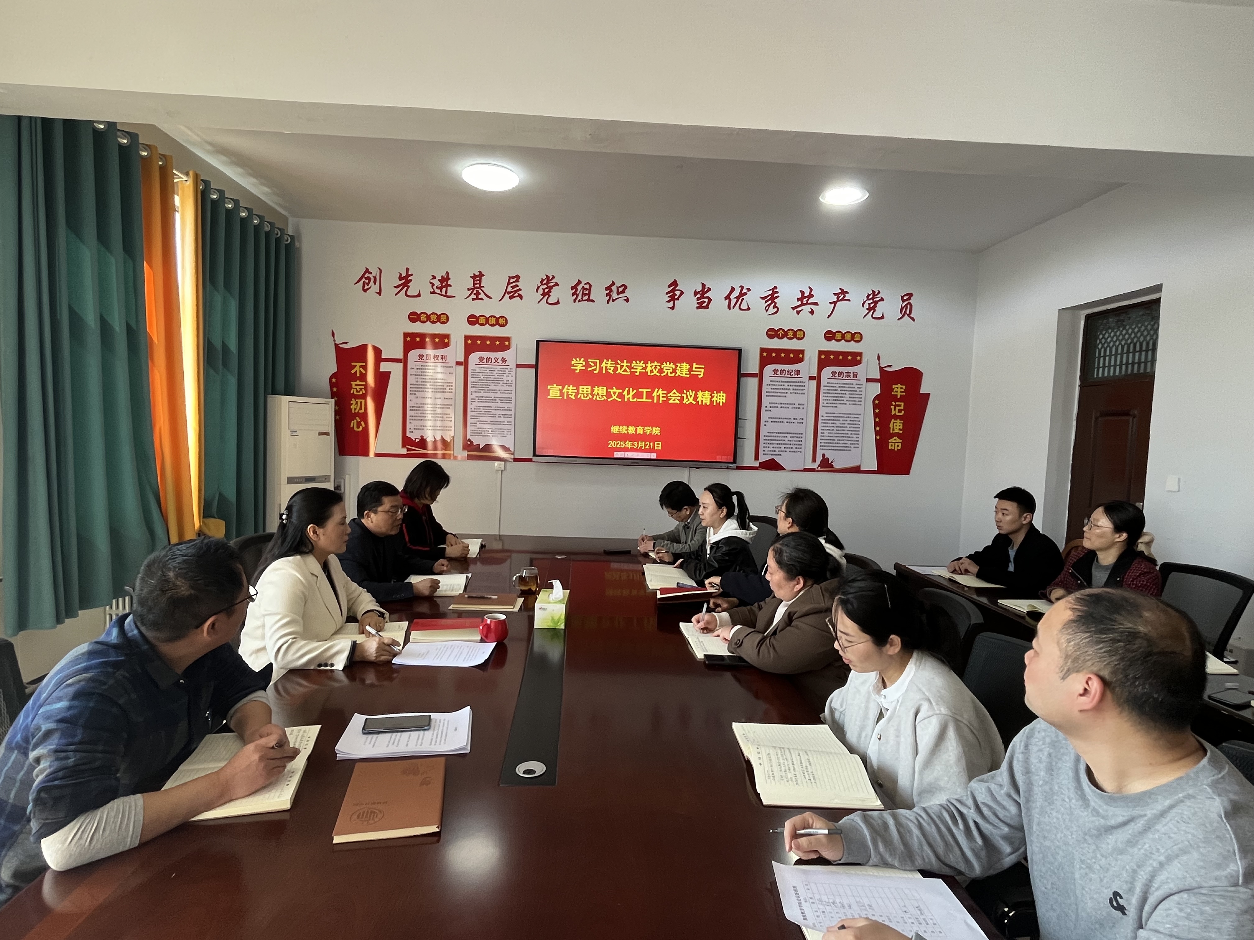 3月21日下午,bv伟德国际1946组织全体教职工集中学习传达公司党建与宣传思想文化工作会议精神,牛月翰书记主持会议。