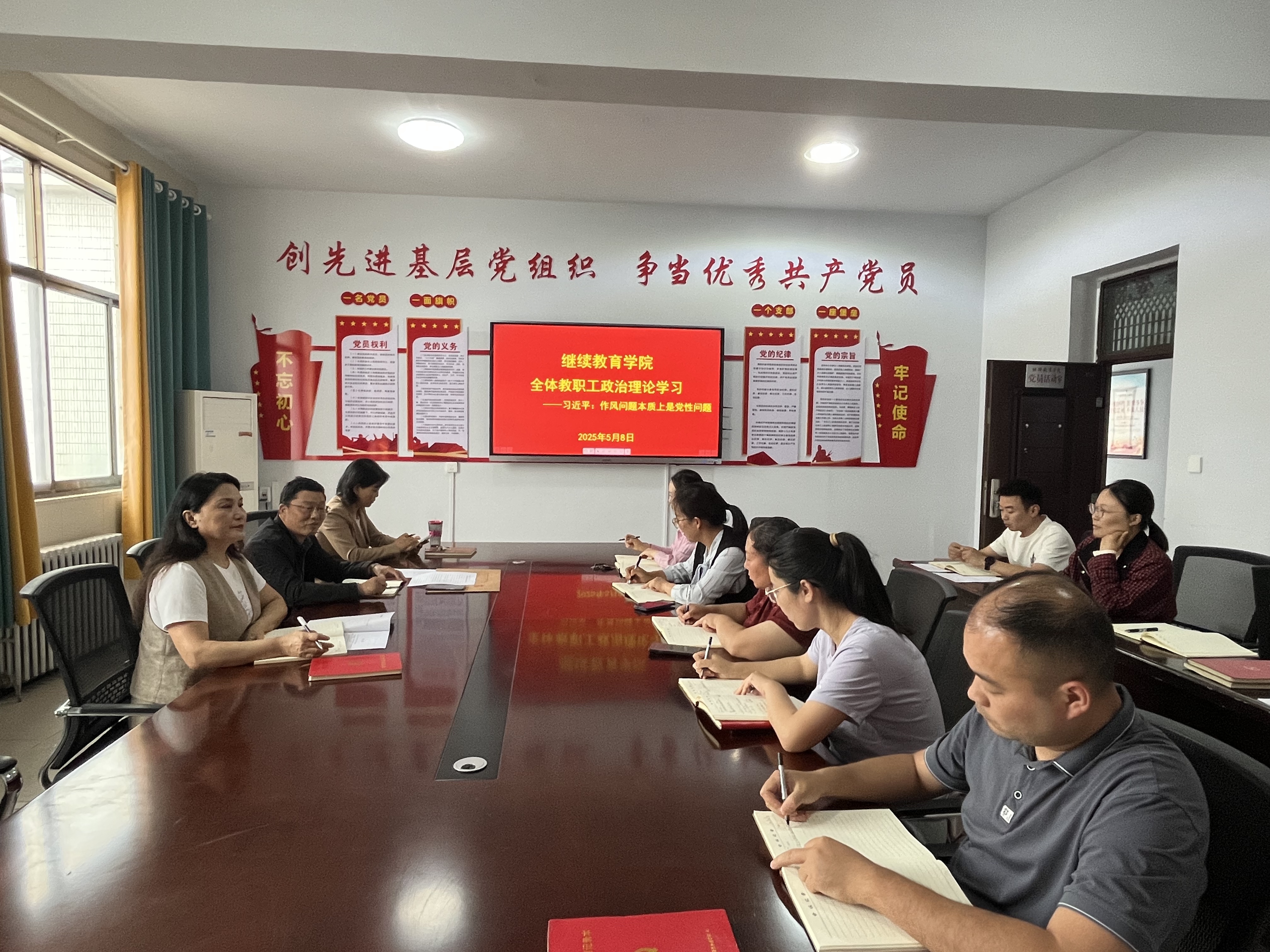 5月8日,为深入贯彻中央八项规定精神学习教育走深走实,公司党总支组织全体教职工进行政治理论学习,集中学习研讨《习近平关于加强党的作风建设论述摘编》的部分内容,并重点围绕“作风问题本质上是党性问题”展开研讨,进一步强化党性修养,锤炼过硬作风。牛月翰主持学习研讨。