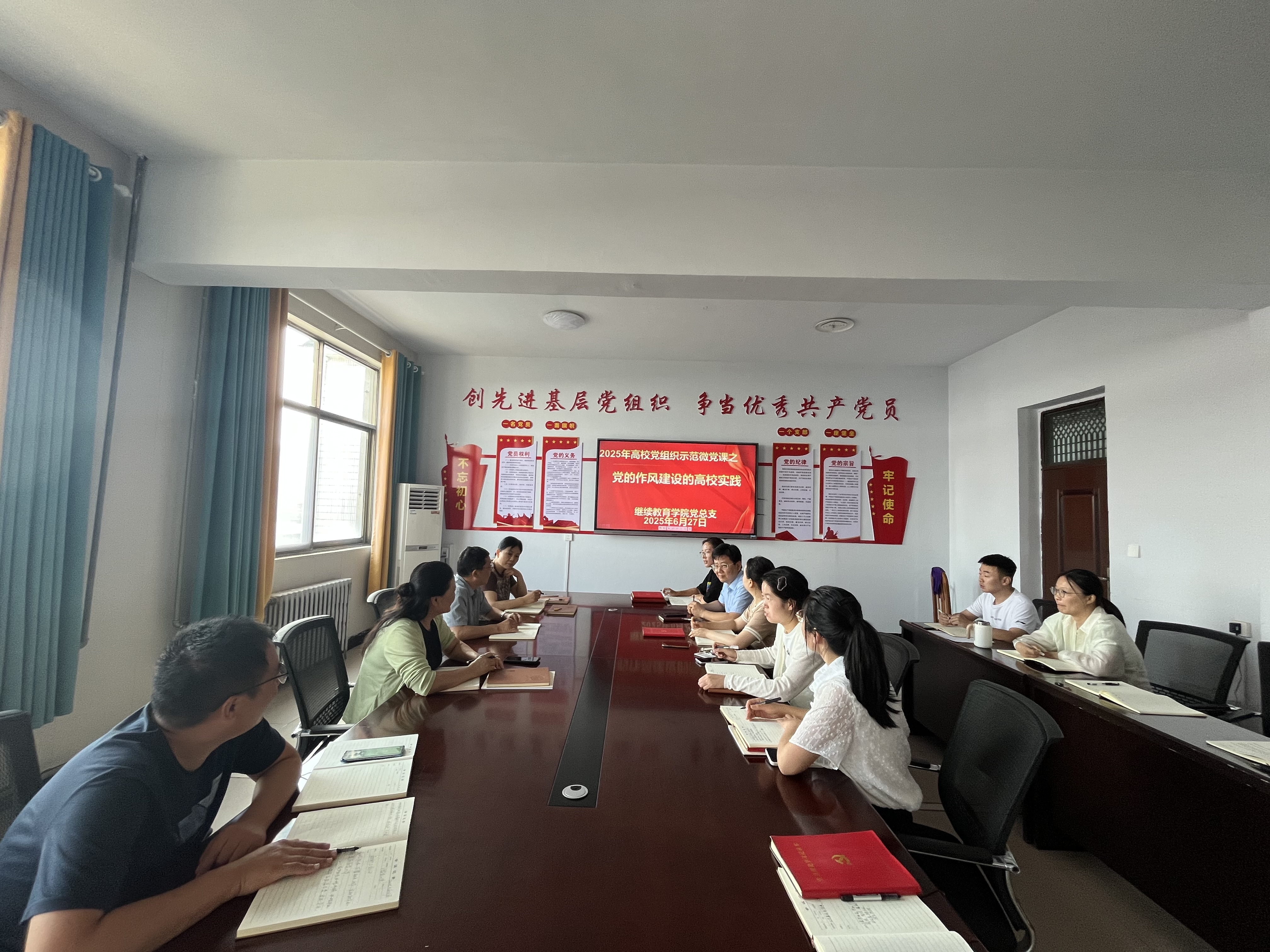 6月27日,按照公司党委组织部工作要求,公司党总支组织全体教职工收看2025年《党的作风建设的高校实践》高公司党示范微党课展播。