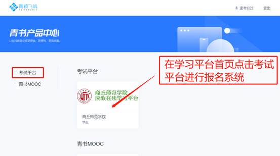 3.选择考试平台,点击进入报名页面;如果员工在成教平台学习页面则点击右上角姓名进入首页点击考试平台即可。