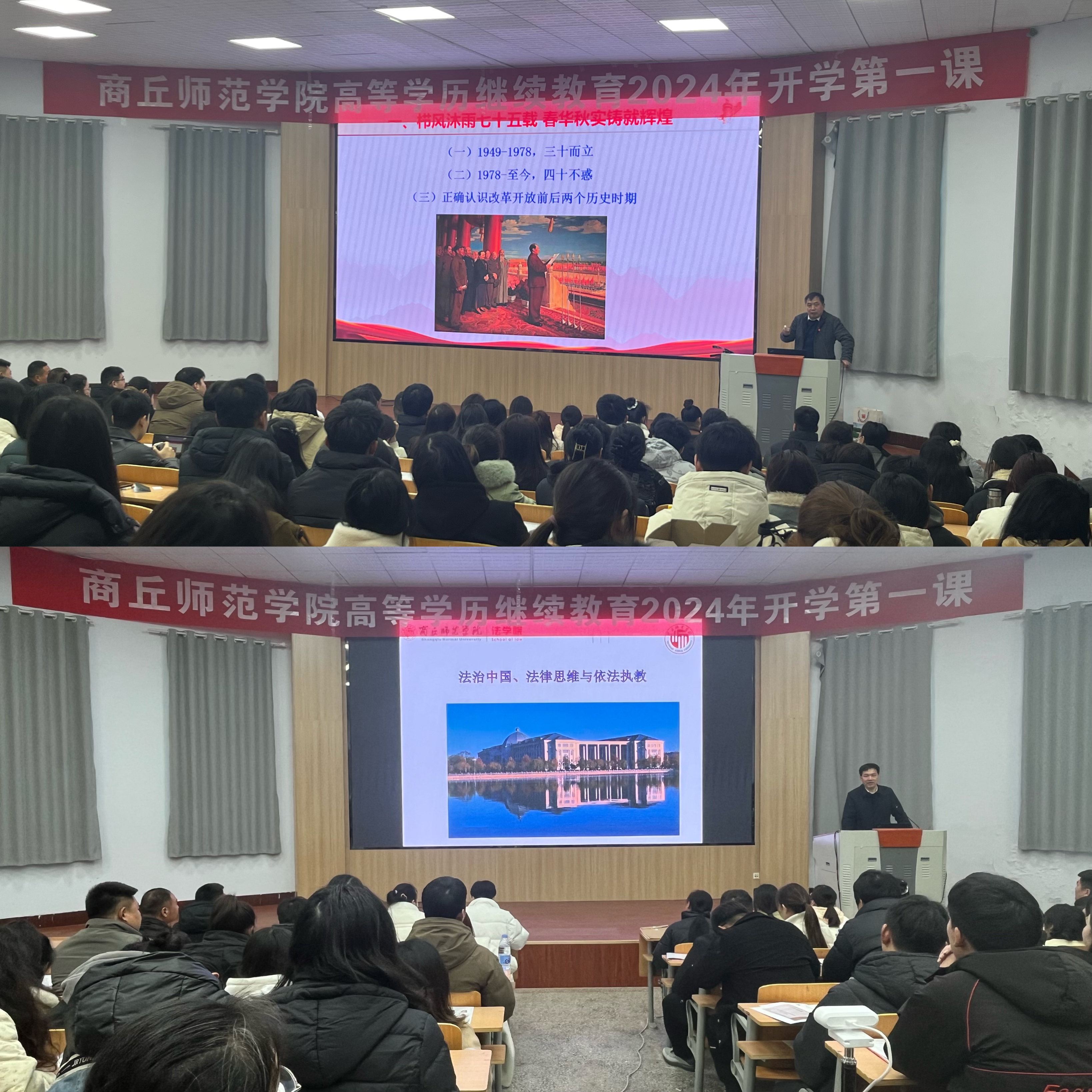 随后,对2024年新学员进行开学第一课思想政治教育和法治教育等入学教育。马克思主义公司党委书记龚志宏教授讲授了《回望75周年辉煌成就 推进教育强省强市建设》,法学院经理张雷教授讲授《法治中国、法律思维和依法执教》。
